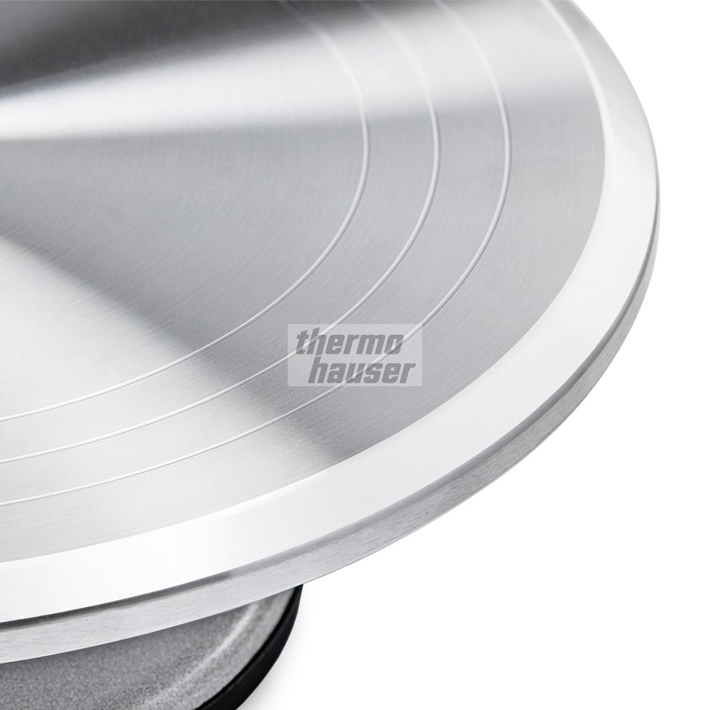 Jeśli lubisz, gdy praca w kuchni idzie płynnie i z przyjemnością, ta patera obrotowa szybko stanie się Twoim niezastąpionym pomocnikiem. Stabilna, solidnie wykonana i niezwykle wygodna w użytkowaniu — pozwala obracać tort jednym lekkim ruchem dłoni, dzięki czemu dekorowanie staje się prostsze i bardziej precyzyjne.