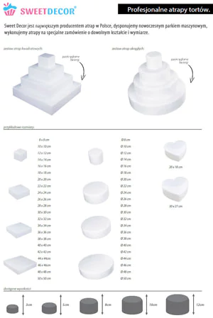 Styropianowa makieta tortu idealnie nadająca się do samodzielnej nauki obkładania tortu lukrem plastycznym. Torty wykonane na bazie atrap idealnie nadają się jako ekspozycja w kawiarni lub cukierni.