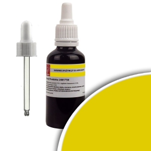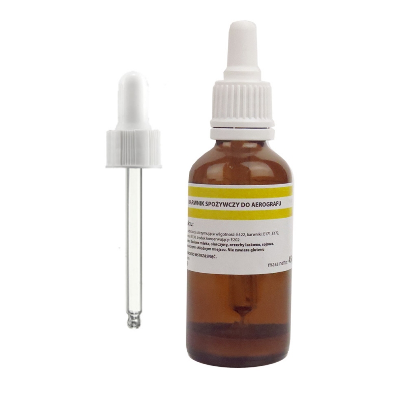 Profesjonalny żółty barwnik w płynie renomowanej włoskiej firmy Modecor do aerografu spożywczego. Dający doskonałą, intensywną barwę, wydajny barwnik, idealny do tworzenia wymyślnych grafik i wzorów na tortach za pomocą aerografów spożywczych.
