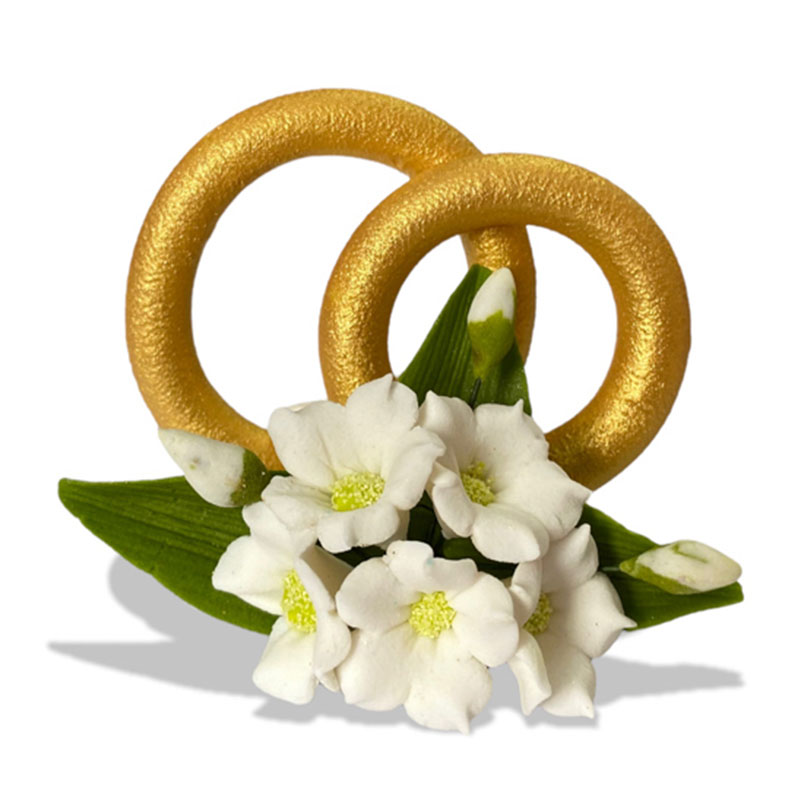 Zestaw składa się z dwóch obrączek cukrowych oraz białych dzwonków (kwiatów).