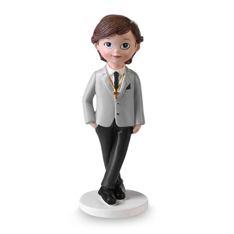 Elegancka dekoracja komunijna "ELEGANTE" chłopczyk to gotowa figurka na tort, który pozwala w prosty sposób stworzyć wyjątkowy i symboliczny wypiek na Pierwszą Komunię Świętą.