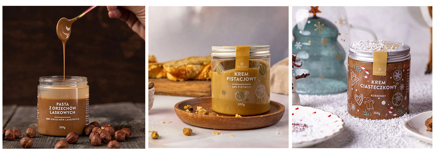 Kremy firmy DESEO to nie tylko rewelacyjny smak, ale również przyjemnie aksamitna konsystencja, która sprawia, że krem idealnie sprawdzi się jako dodatek do naleśników, gofrów, deserów, ale również jako nadzienie do croissantów, pączków czy muffinów.