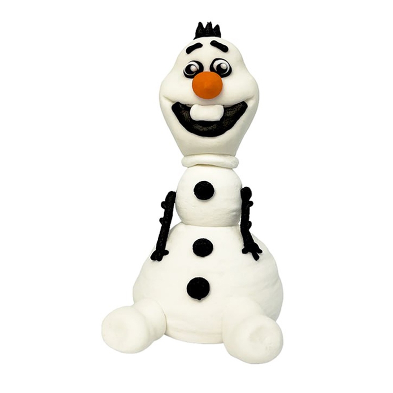 Figurka cukrowa w kształcie słodkiego białego bałwanka Olafa z popularnej bajki "Kraina lodu" to urocza i oryginalna dekoracja na tort lub ciasto.