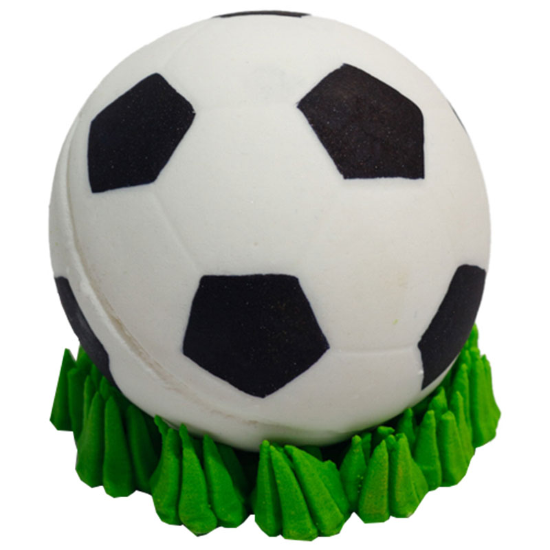 Figurka cukrowa w kształcie piłki nożnej z trawą to świetna ozdoba na tort dla fanów sportu.
