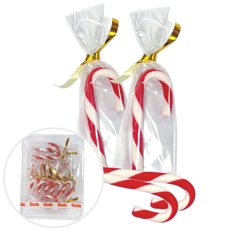 Figurki cukrowe przedstawiające biało czerwone cukrowe laski Bożo Narodzeniowe to oryginalna dekoracja na tort lub ciasto w klimacie świąt Bożego Narodzenia. Figurki wykonane są z masy cukrowej.
