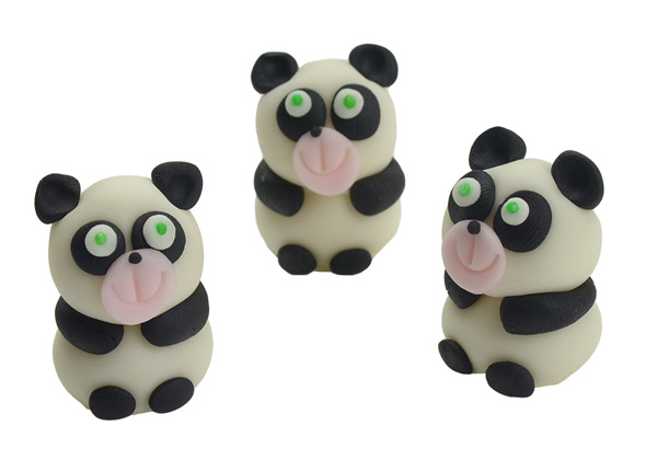 Zestaw figurek cukrowych w kształcie Pand, idealne do udekorowania małego i średniego tortu, oraz innych okazjonalnych wyrobów cukierniczych dla każdego dziecka.