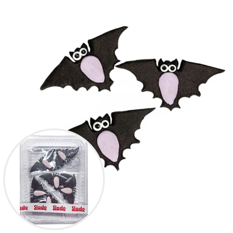 Halloweenowe dekoracje cukrowe w kształcie sześciu czarnych nietoperzy to idealna dekoracja dla różnorodnych tortów i ciast.