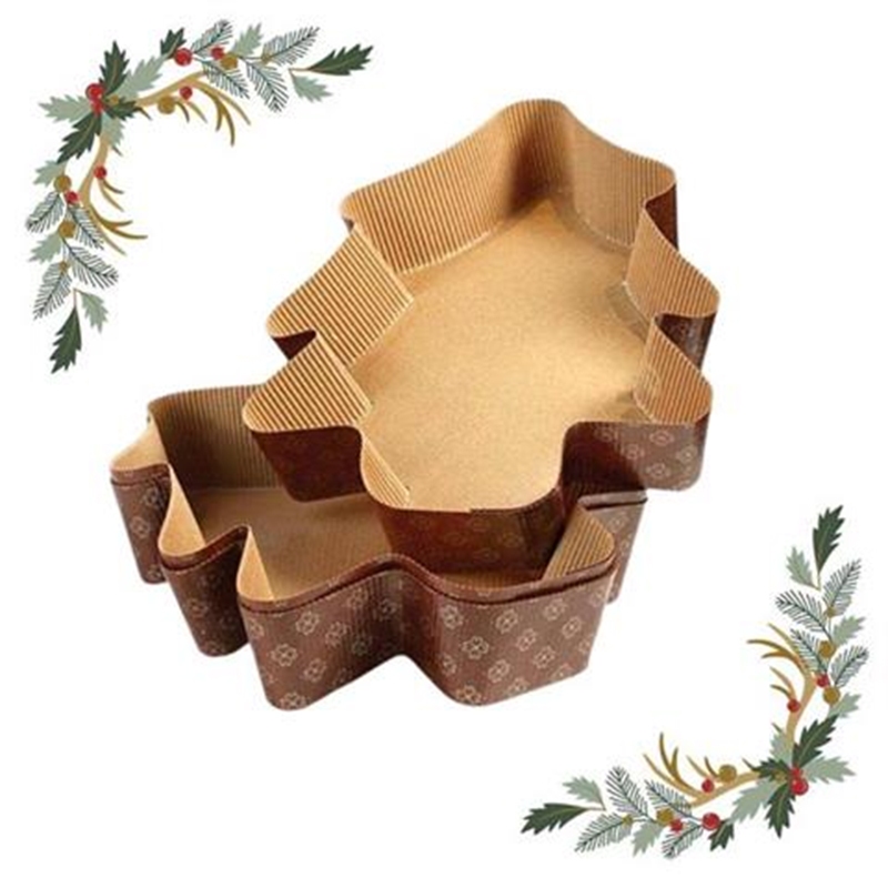 Foremki w kształcie choinki w kolorze brązowym z złotym nadrukiem w kształcie kwiatów. Doskonałe do przygotowywania wypieków - podczas pieczenia produkty pieką się szybko i równomiernie bez konieczności stosowania tłuszczu.