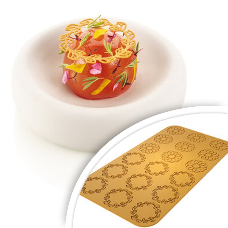 Forma CORONA od włoskiej marki Silikomart to propozycja dla tych, którzy szukają czegoś więcej niż klasycznego kształtu deseru. Inspirowana naturą – przypominającą leśne faktury liści i kwiatów – pozwala tworzyć eleganckie dekoracje na wypieki i monoporcje o wyjątkowo wyrafinowanym wyglądzie.