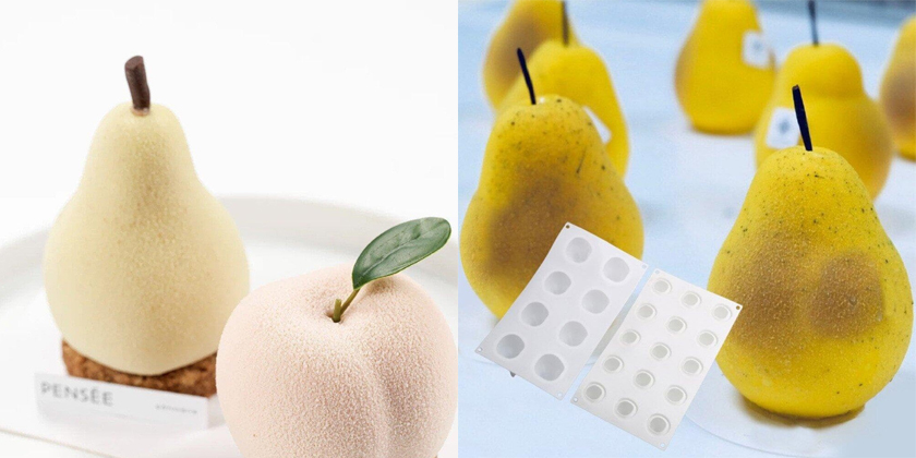 Forma silikonowa w kształcie gruszki, to propozycja dla tych, którzy chcą nadać swoim deserom elegancję inspirowaną naturalnymi owocami. Motyw gruszek pozwala tworzyć efektowną, trójwymiarową modną kompozycję – idealną zarówno do nowoczesnych monoporcji, jak i klasycznych wypieków.
