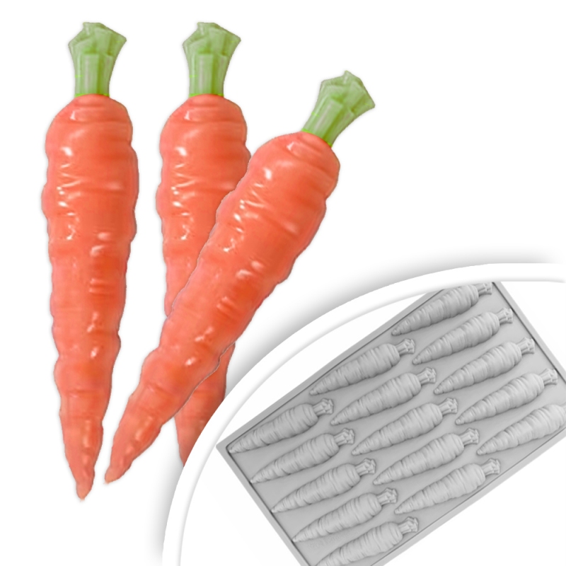 Silikonowa forma umożliwiająca wykonanie monoporcji i deserów w fantazyjnym kształcie marchewek, dając efekt minimalistycznego designu.