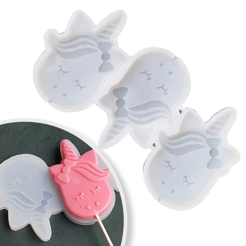 Forma silikonowa do tworzenia dekoracji tortu w kształcie główek jednorożców z czekolady, masy cukrowej czy izomaltu. Gotowa forma w szybki i łatwy sposób pomoże uzyskać piękny kształt głowy jednorożca, które można już dowolnie pomalować barwnikami czy farbkami spożywczymi.