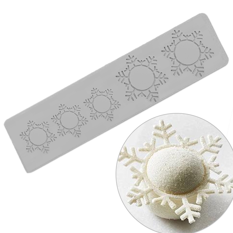 Forma do wykonania ozdób w kształcie płatków śniegu / śnieżynek. Idealne do dekoracji tematycznych tortów i innych wypieków.