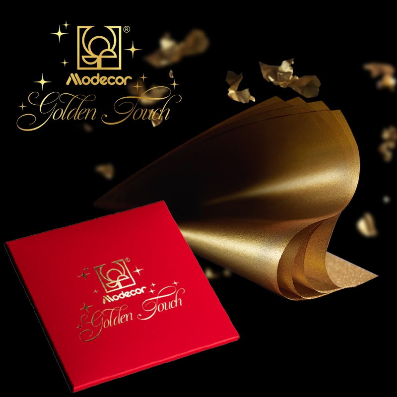 "Golden Touch" Włoskiej firmy Modecor to wyjątkowa dekoracyjna folia w formie listków o wymiarach 80 na 80 milimetrów - wykonana z żelatyny oraz barwnika spożywczego w kolorze złotym, co stanowi mniej kosztowną alternatywę dla prawdziwego złota spożywczego.