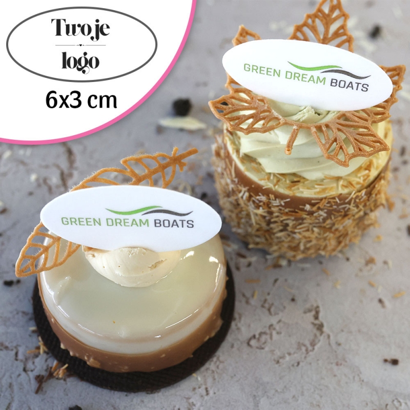 Wydruk Twojego zdjęcia lub grafiki na jadalnym papierze opłatkowym. Idealna dekoracja z cienkiego opłatka, który po nałożeniu na biały krem staje się delikatnie miękki i idealny do krojenia. Idealne logo na muffiny.