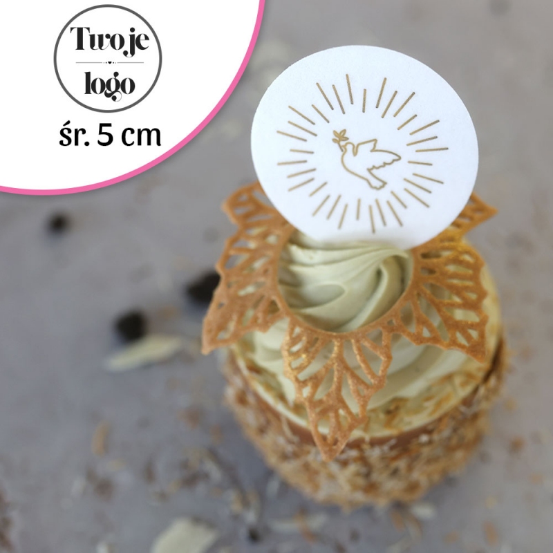 Wydruk Twojego zdjęcia lub grafiki na jadalnym papierze opłatkowym. Idealna dekoracja z cienkiego opłatka, który po nałożeniu na biały krem staje się delikatnie miękki i idealny do krojenia. Idealne logo na muffiny.
