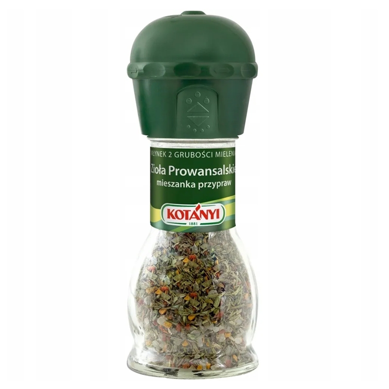 Kotányi Zioła Prowansalskie – Mieszanka ziół w młynku z dwoma grubościami mielenia.