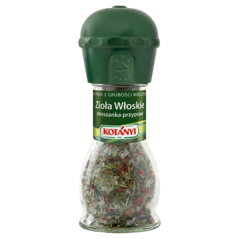 Kotányi Zioła Włoskie – Mieszanka włoskich ziół w młynku z dwoma grubościami mielenia.