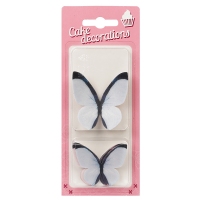 Efektowna dekoracja w kształcie motyli wykonana z barwionego opłatka do ozdobienia okazjonalnych ciast i deserów.