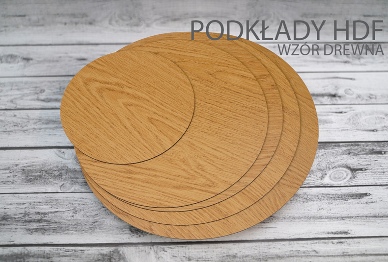 Okrągłe podkłady z płyty HDF, o dużej twardości.