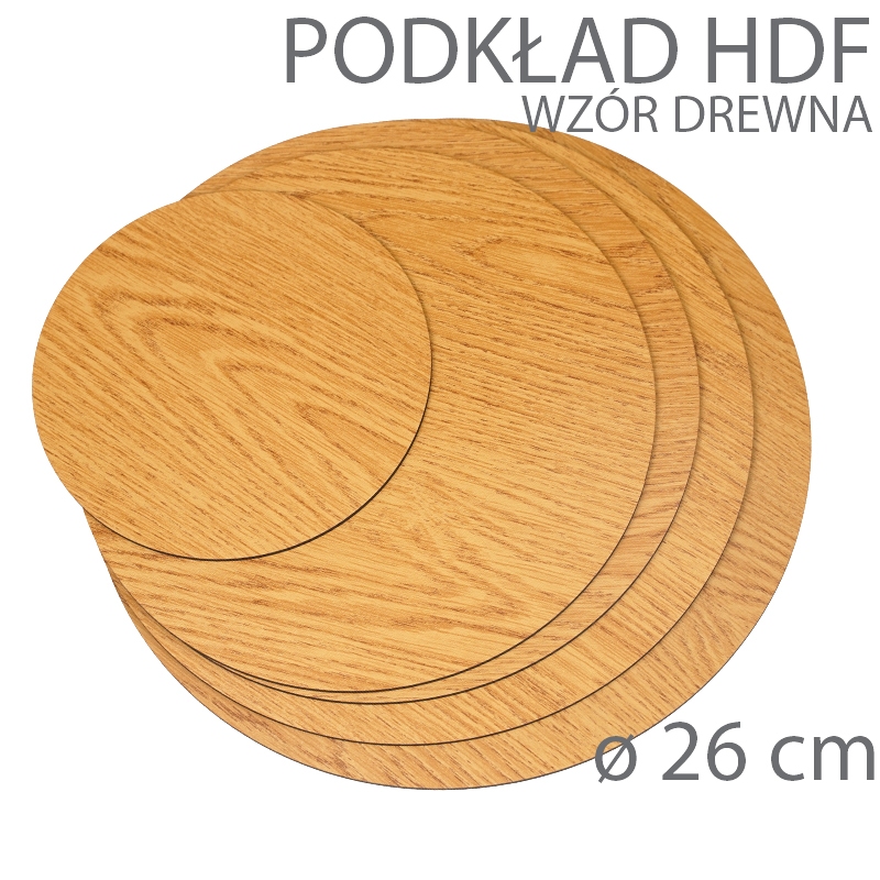 Okrągłe podkłady z płyty HDF, o dużej twardości.
