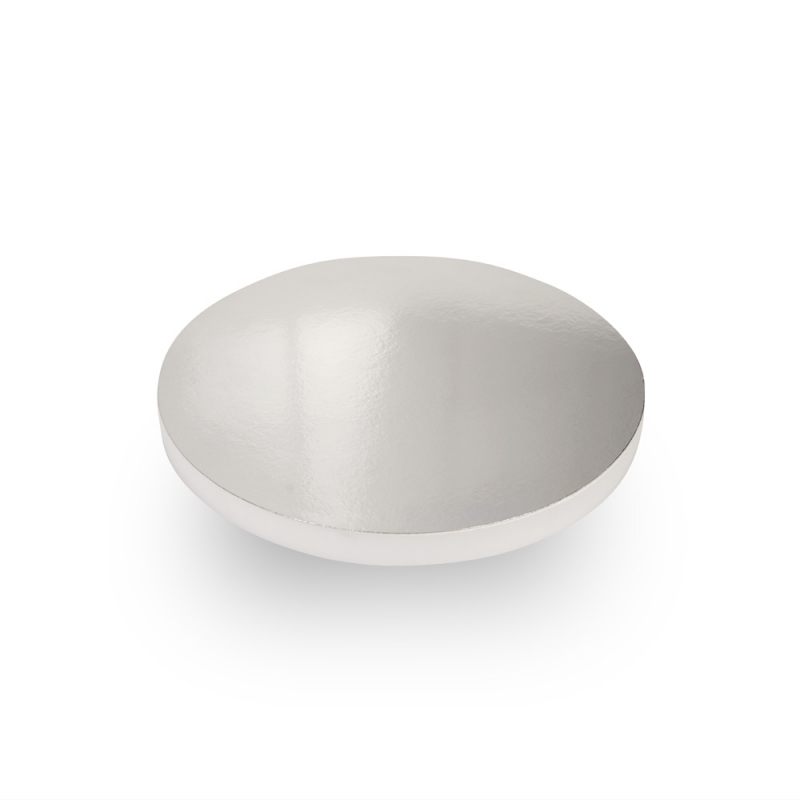 Okrągłe podkłady pod tort. Podstawa podkładu wykonana z solidnego styroduru, natomiast górna cześć pokryta została srebrnym krążkiem podkładowym, wykonane z litej tektury.