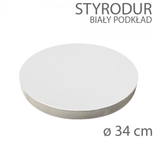 Okrągłe podkłady pod tort. Podstawa podkładu wykonana z solidnego styroduru, natomiast górna cześć podkładu pokryta została białym krążkiem podkładowym, wykonane z litej tektury w kolorze białym.