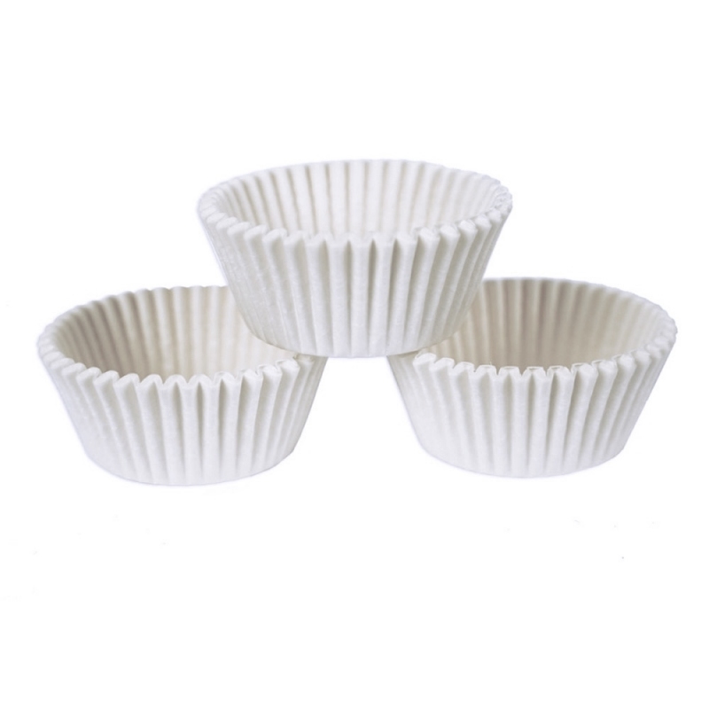 Papilotki białe 50x45mm to duże, papierowe foremki do pieczenia i dekorowania mini muffinek, babeczek lub pralin.