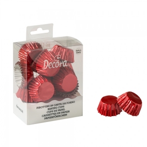 Metalizowane papilotki firmy Decora w kolorze czerwonym, to idealna dekoracja jak również sposób na tworzenie różnorodnych okrągłych ciasteczek oraz babeczek. Papilotki dodają uroku każdemu wypiekowi i sprawią, że muffinki będą się prezentowały wyjątkowo. Perfekcyjnie sprawdzą się nie tylko jako dekoracja urodzinowa dla dzieci, ale również doskonale ozdobią stoły na różne okazje np. Walentynki.