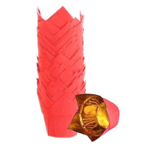 Oferujemy państwu papilotkę tulipanową do babeczek i wypieków. Oferowana w naszym sklepie śliczna papilotka tzw. tulipanowa dostępna jest w kolorze czerwono złotym.