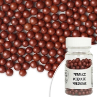 Perełki w kolorze rubinowym z cukru, świetnie nadają się do dekoracji ciast, lodów, deserów oraz pierniczków.