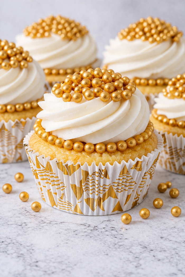 Perełki złote nabłyszczane i mięciutkie z cukru do dekoracji ciast, tortów, deserów i pierniczków.