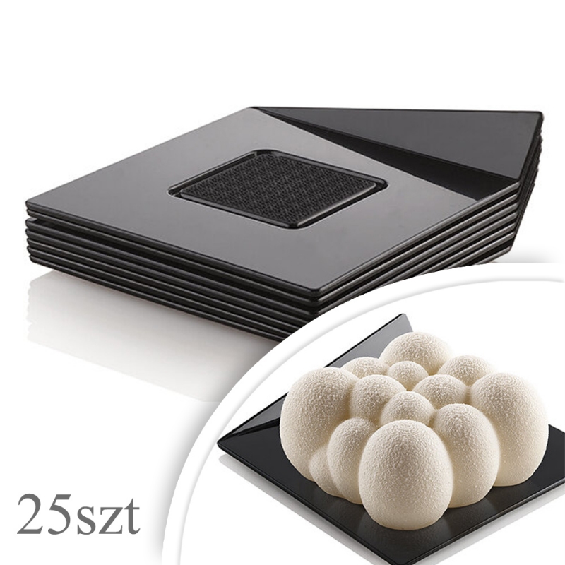Eleganckie wykonane z tworzywa podkładki kwadratowe w kolorze czarnym to doskonały dodatek do serwowania monoporcji, mini deserów i innych słodkich wypieków. Wykonane z wysokiej jakości tworzyw, zapewniają estetyczny wygląd i podkreślają ekskluzywny charakter każdej porcji.