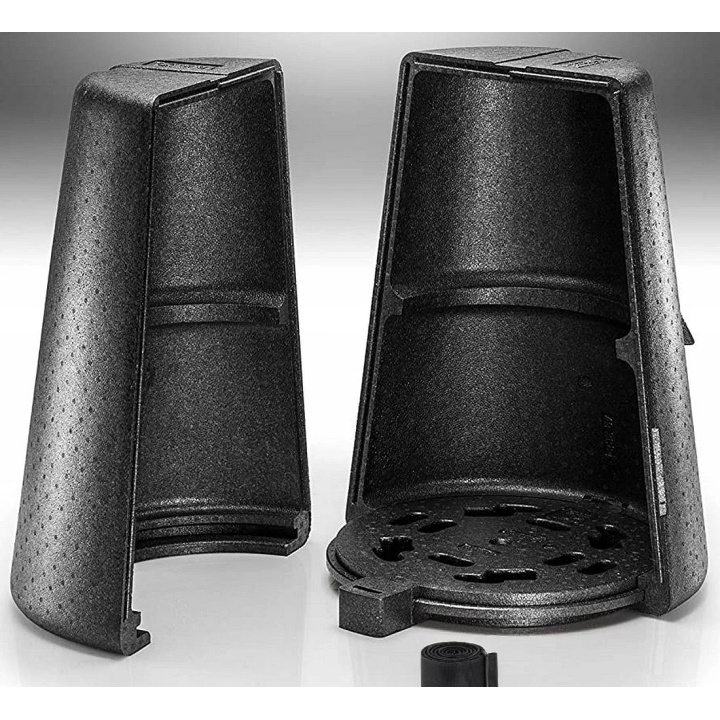 Wykonany z czarnego materiału EPP (spieniony polipropylen) — lekki, wytrzymały i o doskonałych właściwościach izolacyjnych (od –40 °C do +120 °C).