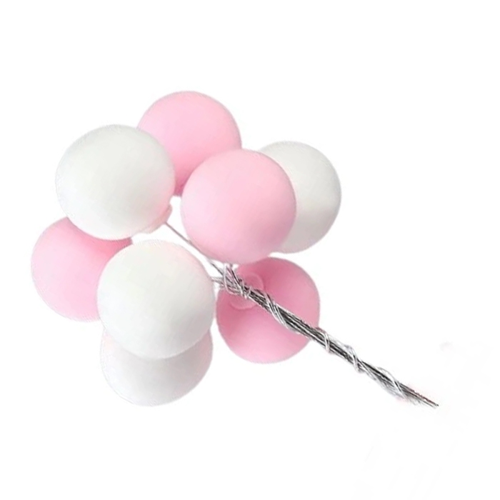 Jako gotową dekorację oferujemy zestaw ośmiu pomponików na drucikach. Dzięki takiej dekoracji szybko i efektownie ozdobisz każdy tort.