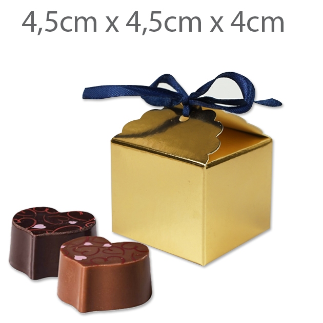 Gustowne pudełeczko w kolorze złotym na jedną pralinkę.