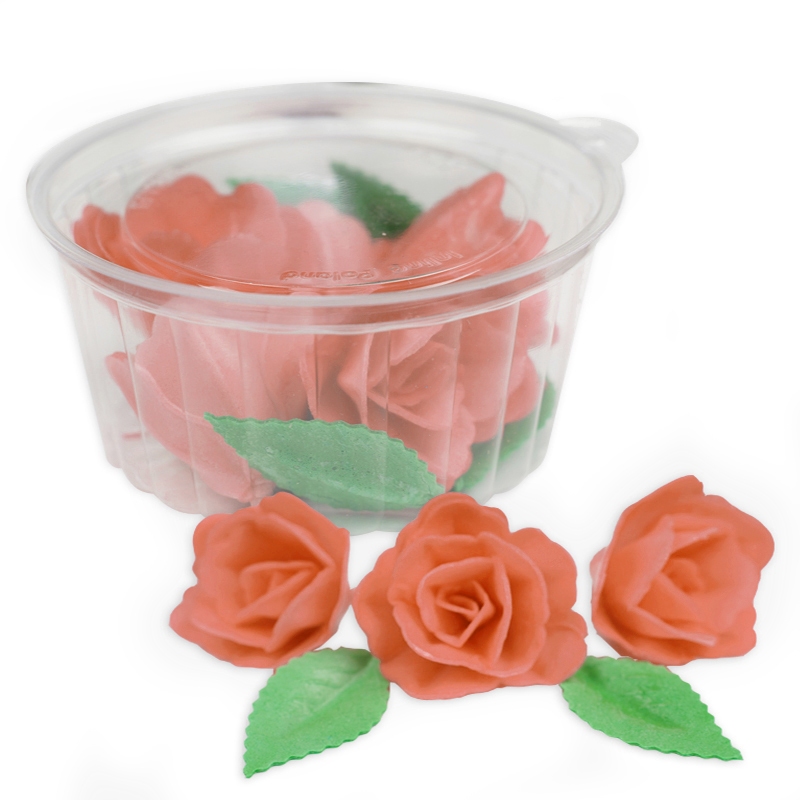 Efektowna dekoracja w kształcie delikatnych róż wykonanych z opłatka dla ozdoby i podkreślenia wyjątkowego charakteru okazjonalnych ciast i deserów.