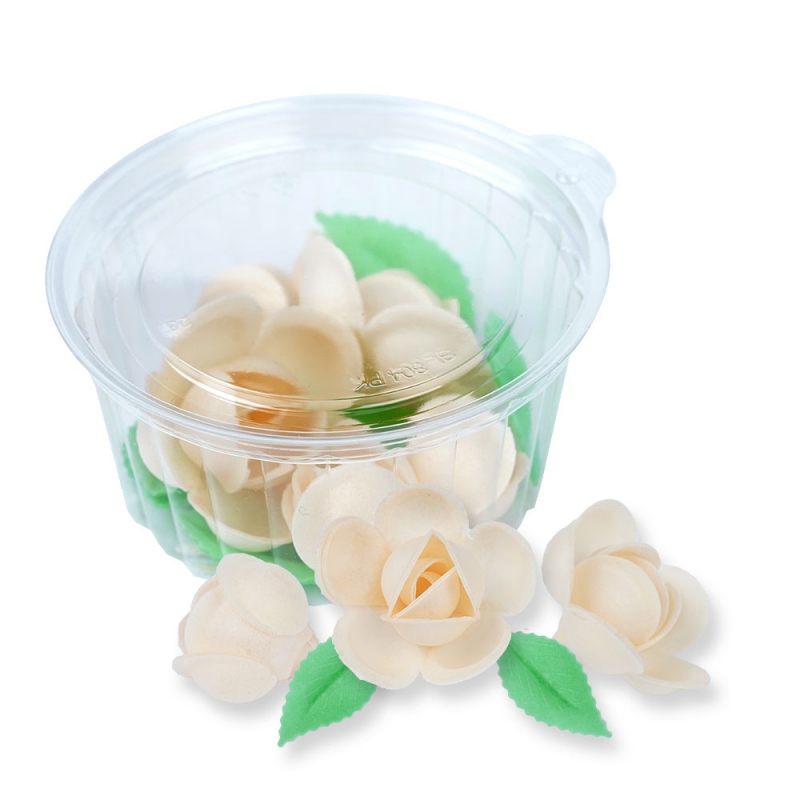 Efektowna dekoracja w kształcie delikatnych róż wykonanych z opłatka dla ozdoby i podkreślenia wyjątkowego charakteru okazjonalnych ciast i deserów.
