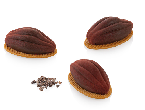 Forma silikonowa Silikomart „CACAO 30” to propozycja dla tych, którzy chcą nadać swoim deserom elegancję i wyjątkowy wygląd. Motyw ziaren kakaowca pozwala tworzyć efektowną, trójwymiarową modną kompozycję – idealne zarówno do nowoczesnych monoporcji, jak i klasycznych wypieków.