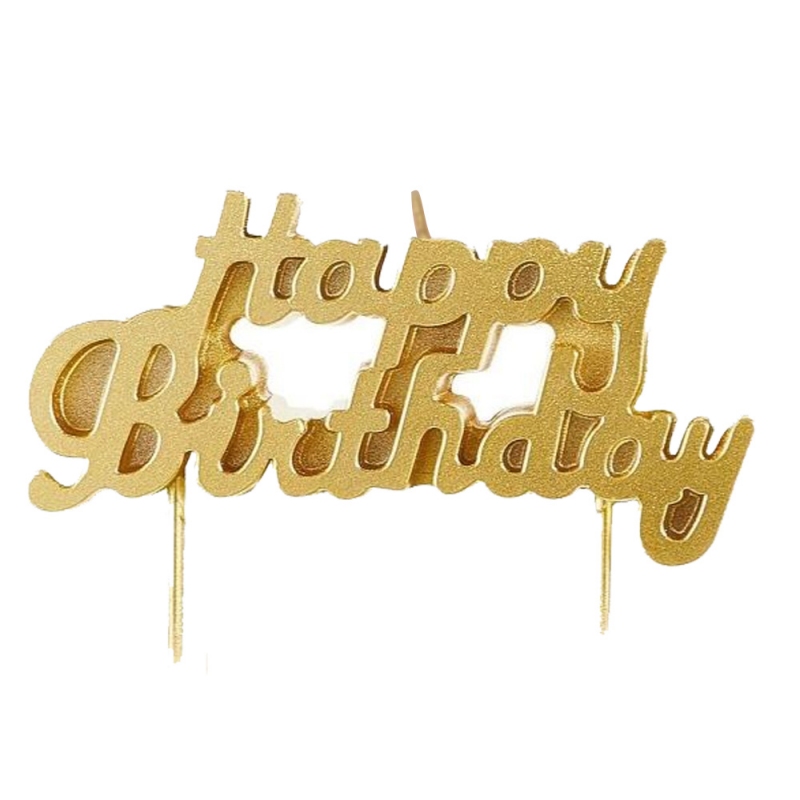 Świeczka urodzinowa z złotym motywem napisu "Happy birthday" świetnie udekoruje każdy tort urodzinowy.