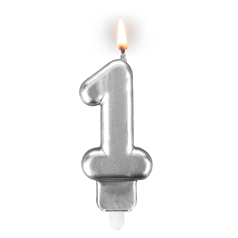 Fantastyczna, elegancka świeczka w kształcie srebrnej cyfry "1".