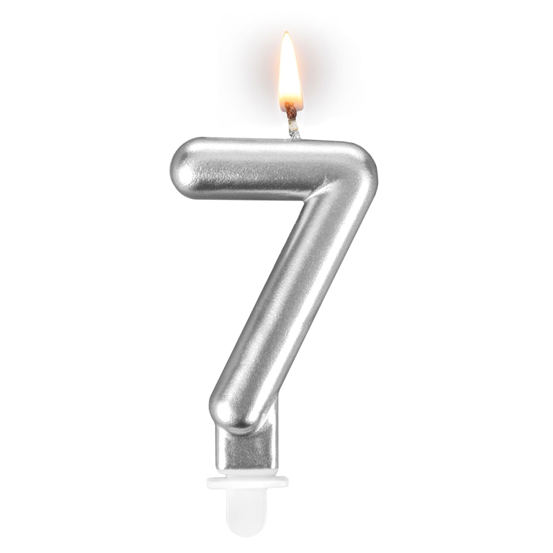Fantastyczna, elegancka świeczka w kształcie srebrnej cyfry "7".