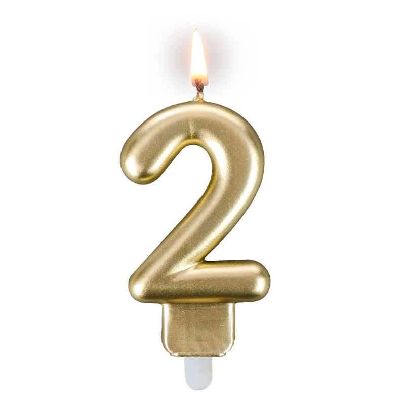 Fantastyczna, elegancka świeczka w kształcie złotej cyfry "2".