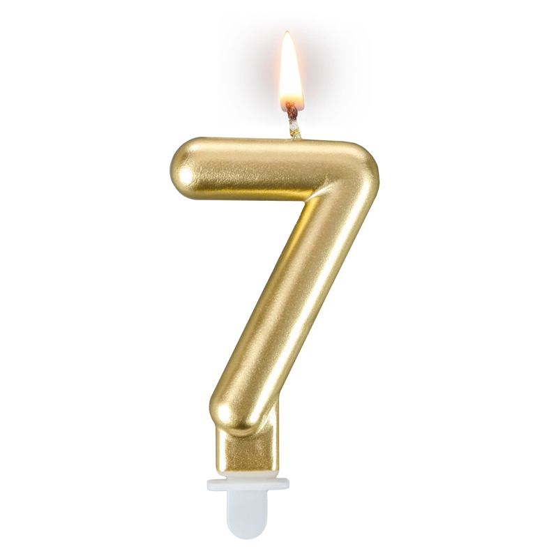 Fantastyczna, elegancka świeczka w kształcie złotej cyfry "7".