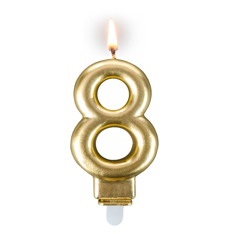 Fantastyczna, elegancka świeczka w kształcie złotej cyfry "8".