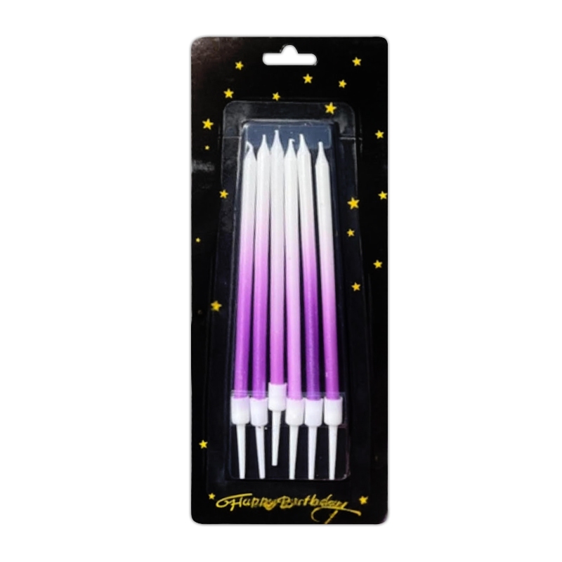 Świeczki urodzinowe biało fioletowe z metalicznym połyskiem świetnie udekorują każdy tort urodzinowy.