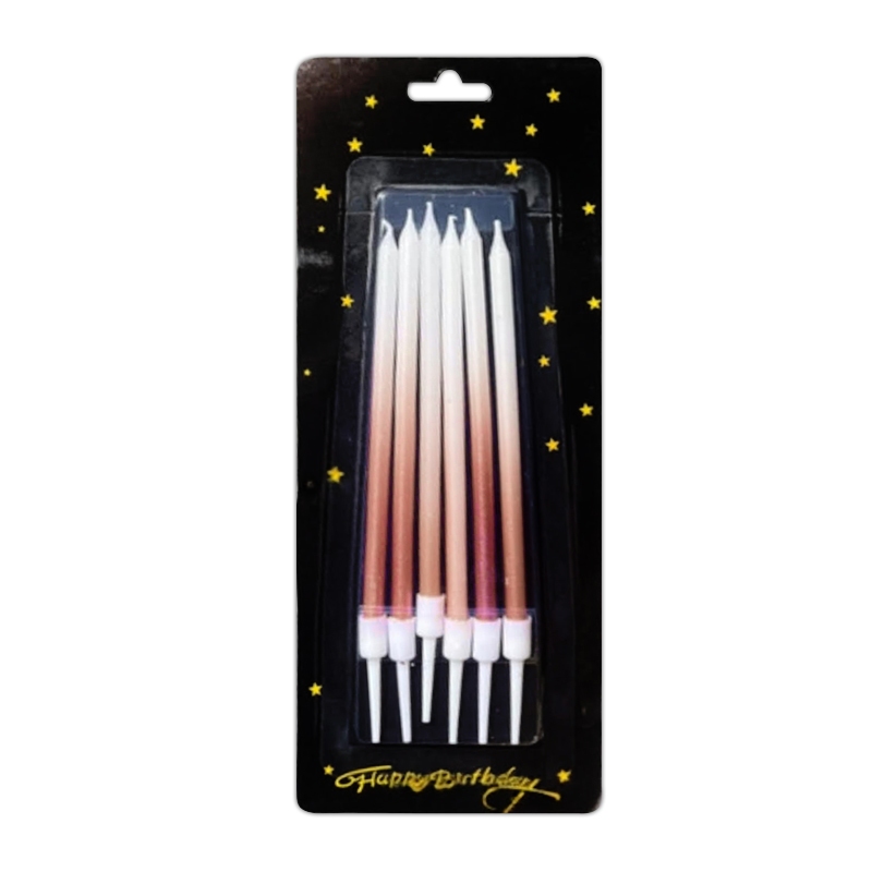 Świeczki urodzinowe biało miedziane z metalicznym połyskiem świetnie udekorują każdy tort urodzinowy.