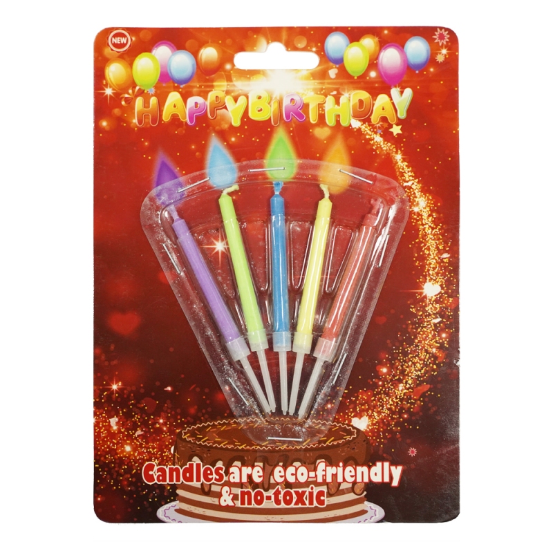 Fantastyczne, różnokolorowe świeczki z kolorowymi płomieniami, idealne do udekorowania tortu lub torcików na urodziny lub inne imprezy okolicznościowe.