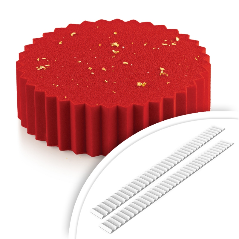 Profesjonalna taśma marki Silikomart to niezastąpione narzędzie dla cukierników i pasjonatów wypieków, którzy chcą nadać swoim deserom wyjątkowy wygląd. Dzięki precyzyjnie zaprojektowanej strukturze pozwala na tworzenie efektownych dekoracji o regularnym, eleganckim wzorze.