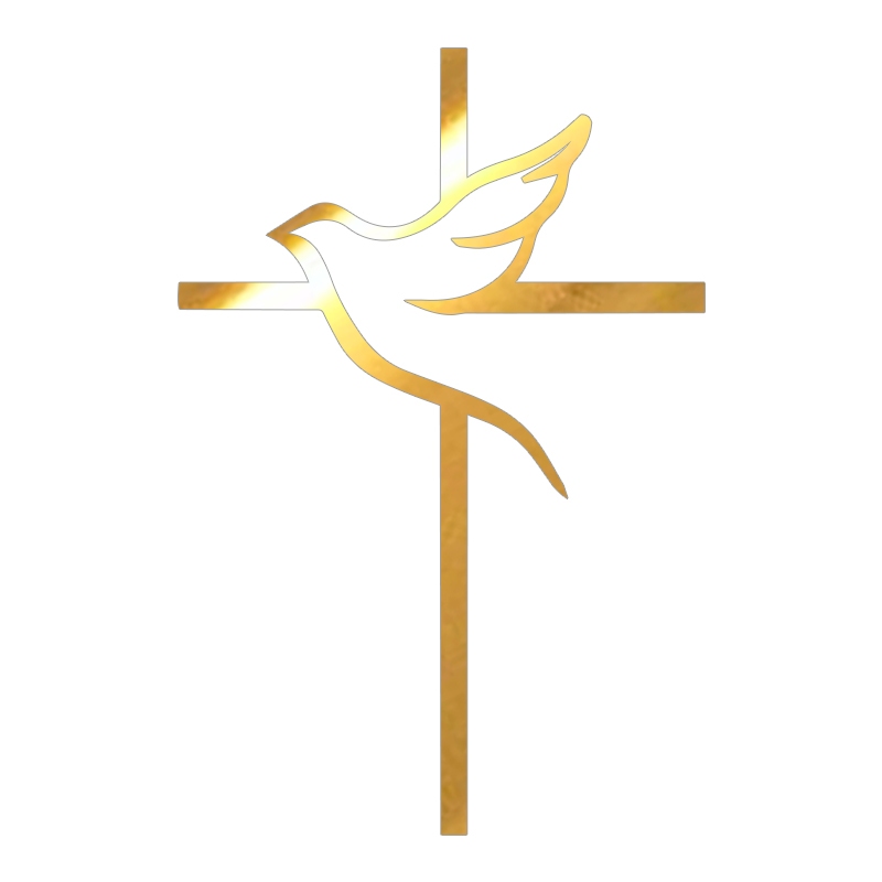 Dekor na tort w kształcie cienkiego krzyżyka z gołąbkiem - wykonany z lustra złotego idealnie nada się do udekorowania wyjątkowych komunijnych wypieków dla chłopców jak i dziewczynek. nie tylko tortów i ciast ale również mniejszych takich jak babeczki, muffiny czy małe ciastka okzajonalne.